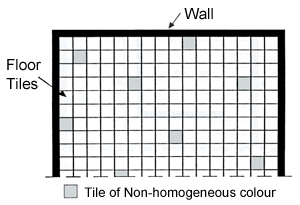 -Tiles tend to have colour variation even from the same production batch. Check that tiles with colour variation are distributed evenly during laying (Fig. 1). Fig. 1 Plan view of even distribution of colour variation of tiles in laying a floor