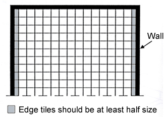 -No tile should sound hollow when tapped randomly with a metallic object. -On an 'open' floor, tiles should be laid symmetrically with the size of edge tiles being more than half (Fig. 5).